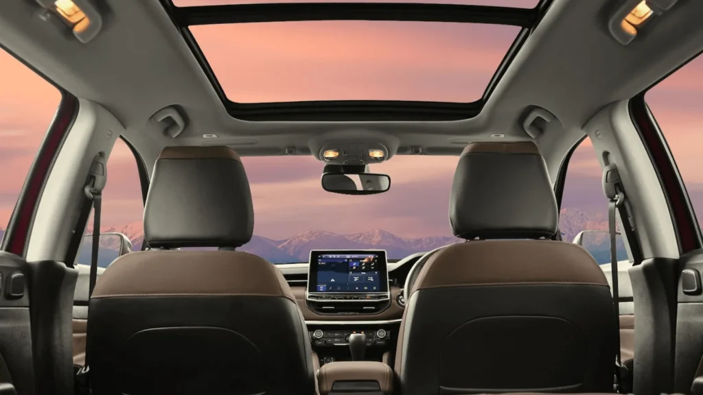 – Premium Interiors: Leather seats, panoramic sunroof, 10.1” touchscreen with Uconnect®, dual-zone AC.