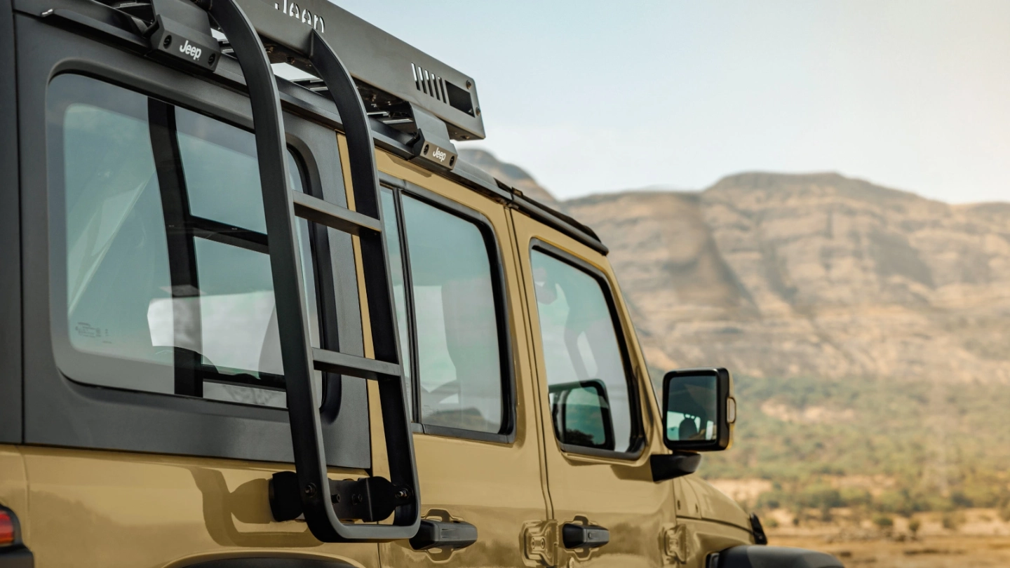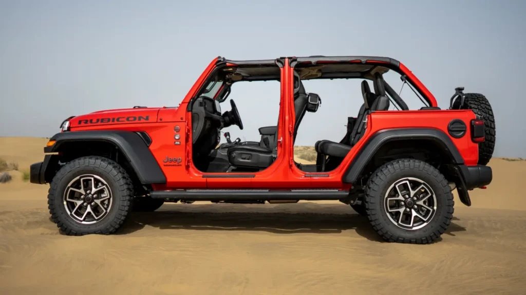 – Iconic Design: Signature seven-slot grille, round LED headlamps, removable doors, and foldable windshield for open-air freedom.